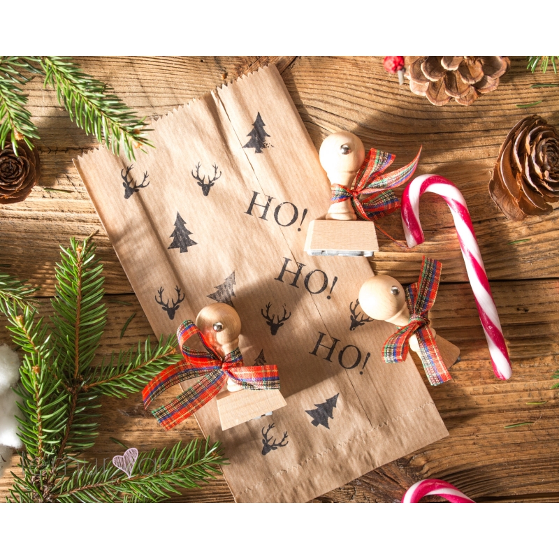 Świąteczny stempel sprawdzi się przy ręcznym ozdabianiu papieru pakowego, etykiet i kopert.